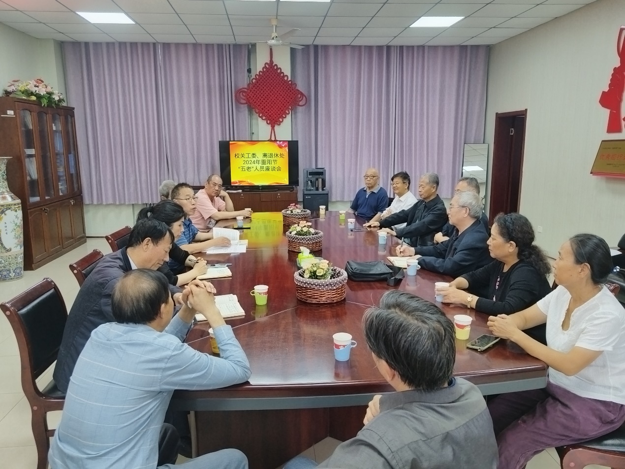 9月24日,校关工委、61今日爆料,每日大赛召开重阳节“五老”人员座谈会,校关工委副主任朱猷卿、黄立成、王荣堂,61今日爆料,每日大赛副处长张新红参加座谈会。61今日爆料,每日大赛党总支书记、关工委秘书长冯利民主持会议。