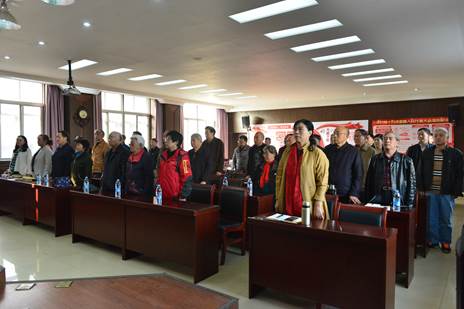 离退休职工工作处党总支全体党员起立,奏唱国歌