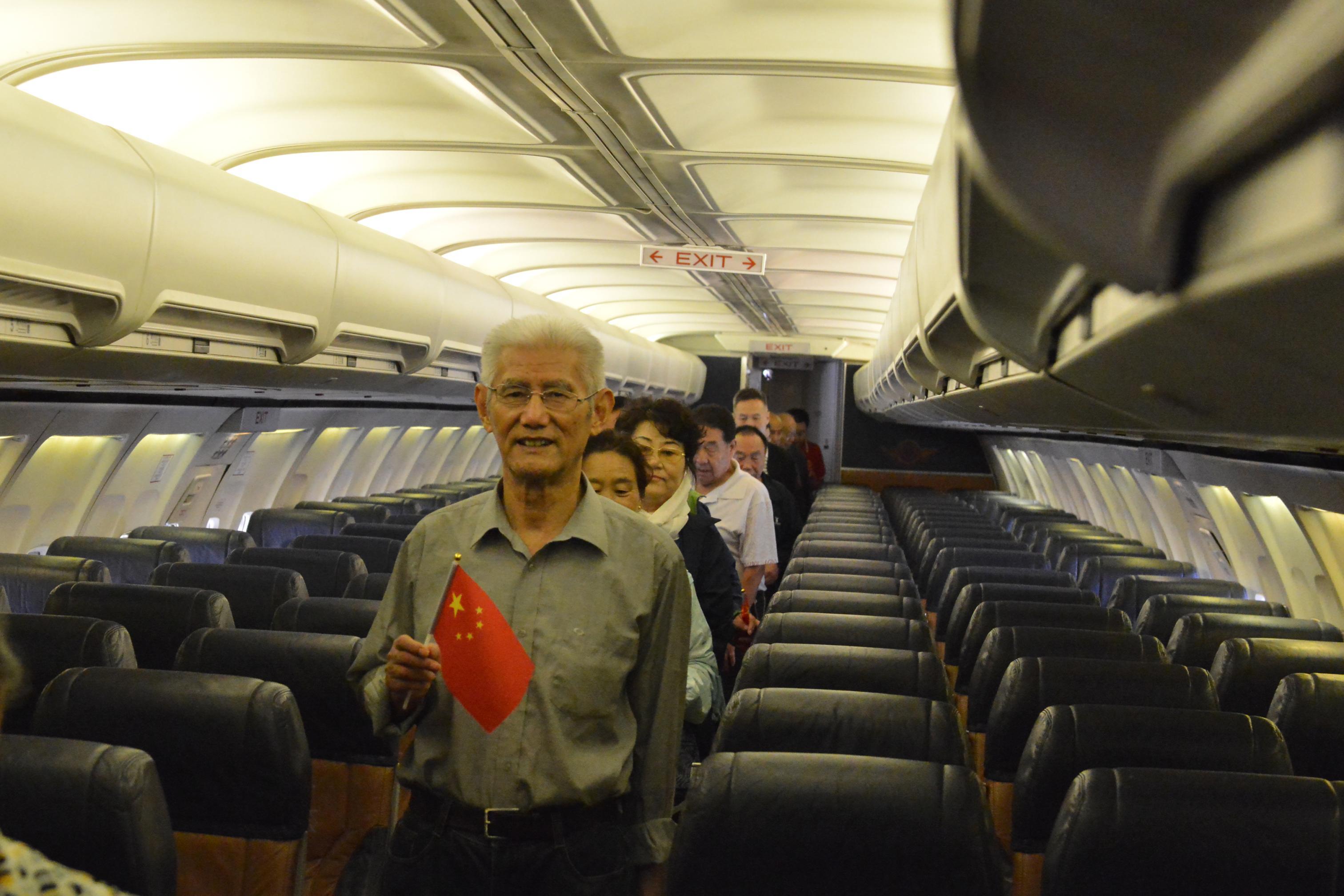 在飞行学院航空实训中心,栗立峰博士向老同志仔细讲解了飞机采购、教学实训等情况,大家为学校的特色办学感到自豪和骄傲,并纷纷登上波音737-300飞机拍照留影。
