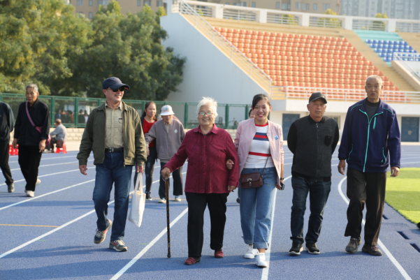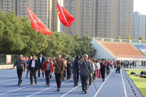 重阳节即将到来,10月15日下午,我校离退休职工管理处在1号体育场举办离退休职工健步走活动。校党委副书记吴建军、副校长万鹏杰出席活动。百余名离退休教职工在1号体育场相聚,有序的站队签到,高举党旗在1号体育场开始健步走活动。