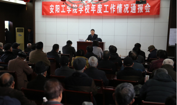 景国勋首先代表学校党委行政向与会离退休老同志表示亲切慰问,对老领导、老教师们长期以来对学校工作做出的贡献表示由衷的敬意,感谢他们长期以来对学校事业的关心、理解和支持,并为他们送上新年祝福。他向与会的老领导、老教师详细介绍了学校正在全力推进实施的“1324”工程情况,并用“3423”概括了学校2017年度工作:“3大突破”,即学校获批硕士学位授予立项建设单位,办学层次有新突破;科研平台建设实现质和量的新突破;科研水平有新突破。“4个提升”,即人才培养质量有新提升;航空特色专业集群建设有新提升;学科建设有新提升;学校声誉有新提升。“2个显著”,即师资队伍建设成效显著;产学研合作成效显著。“3个推进”,即强力推进安阳大学科技园建设;大力推进教职工福利待遇提高;大力推进对外合作交流工作。同时,景国勋又介绍了学校依法治校和党建方面的情况。接着,景国勋简要介绍了学校2018年在党建、教育教学、学科科研、人才队伍、国际合作、基建等方面的重点工作打算。景国勋指出,学校各项事业稳步推进,所取得的成绩离不开上级部门、学校老领导、老干部、老同志的关心、支持和几代安工人打下的基础。2018年是“十三五”规划实施的重要之年,学校将着力内涵建设、推进外延拓展、注重环境营造,在新的历史条件下,实现新跨越,为地方经济社会发展作出新的贡献,也为学校新一轮发展奠定坚实的基础。