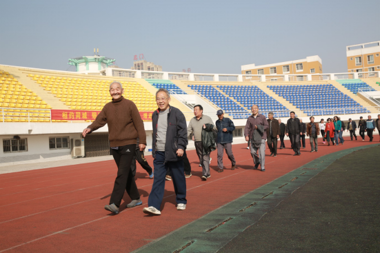 九九重阳节,浓浓敬老情。10月27日上午,我校组织离退休老干部职工在1号体育场举办“庆祝十九大,喜迎重阳节”健步走活动,两百余名退休干部职工参加了此次活动。校党委副书记吴建军也来现场,与老同志们一起健步走。活动中,老同志们边走边聊,气氛融洽。其中几名老教师,虽然年事已高,但依然精神抖擞,迈着矫健的步伐走在队伍最前方,途中还相互交流各自的健身体会。