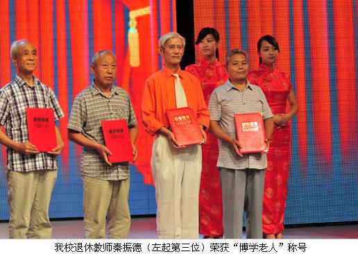 8月13日晚,“邮储银行杯”安阳市首届百名“最美老人”评选活动颁奖晚会在安阳广播电视台演播大厅隆重举行。我校退休教师秦振德获“博学老人”称号。