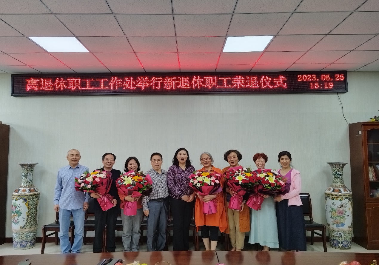 为深入贯彻落实党的二十大精神和习近平总书记关于老干部工作的重要指示,切实体现党组织对退休职工的重视与关爱,进一步增强退休职工的荣誉感和归属感,近日,离退休职工工作处在学校关工委会议室为李一、张妙玲、郭进全、吴钦春、吴洁五位同志举办了荣誉退休仪式。离退休职工工作处领导班子成员、处室全体工作人员参加了本次活动,仪式由处长冯利民同志主持。