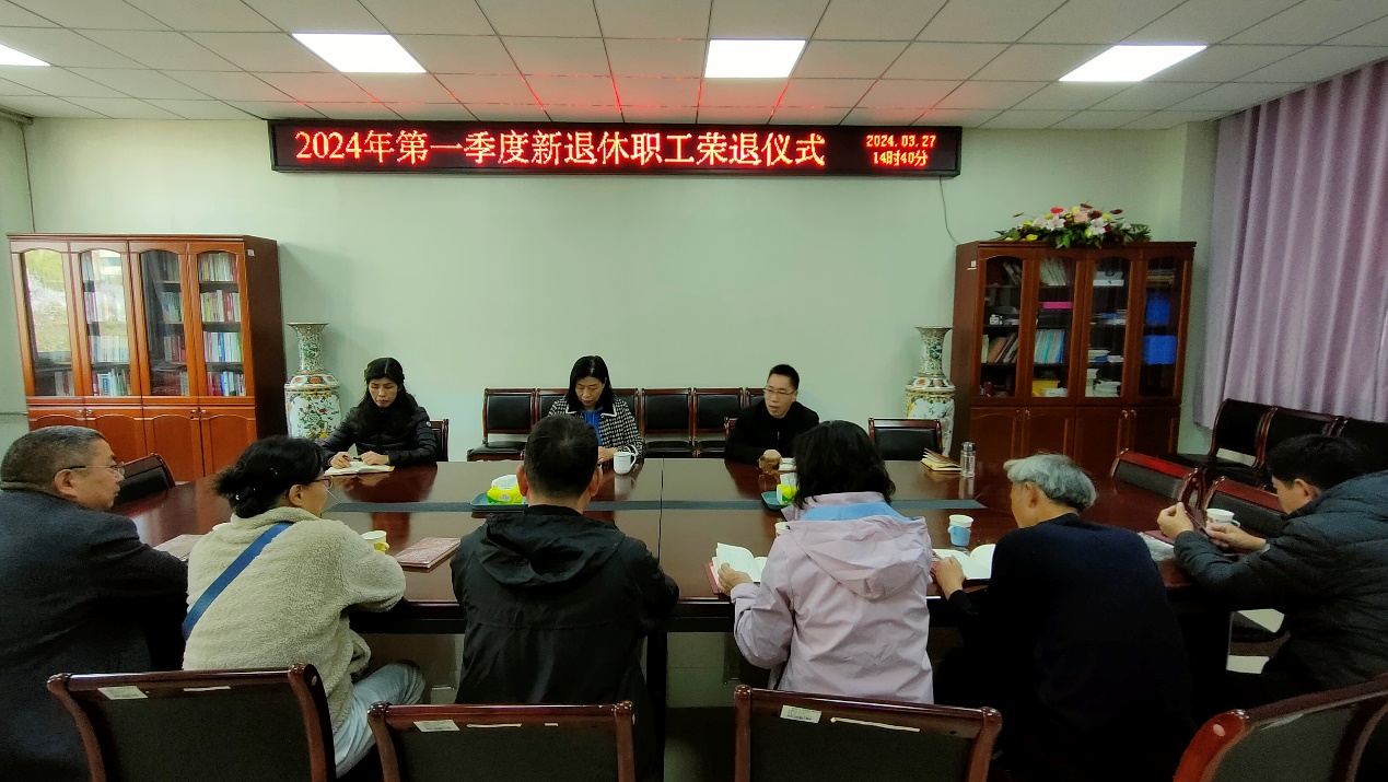 为深入贯彻落实党的二十大精神和习近平总书记关于老干部工作的重要指示,切实体现学校对退休职工的重视与关爱,进一步增强退休职工的荣誉感和归属感,3月27日,离退休职工工作处在离退处关工委会议室为郝贵增、秦春成、张琳、尹晓予、李军领、陈现臣、周钢领、邢春芳八位同志举办了荣誉退休仪式。离退休职工工作处领导班子成员集体参加,仪式由冯利民处长主持。