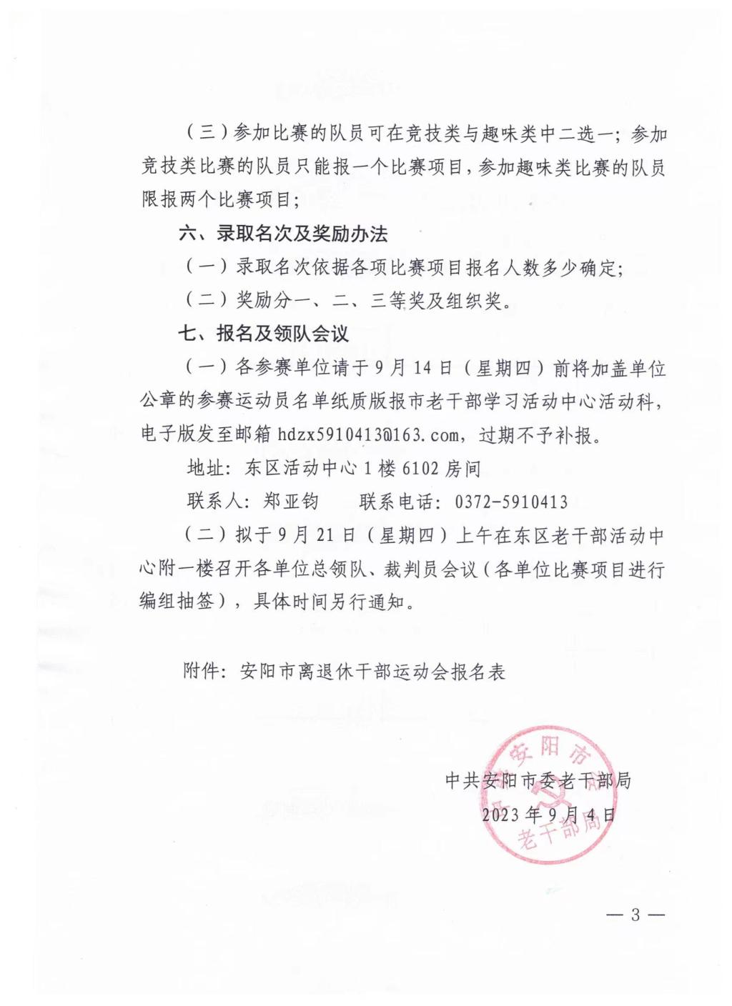 关于组织全市第三届离退休干部运动会报名的紧急通知: