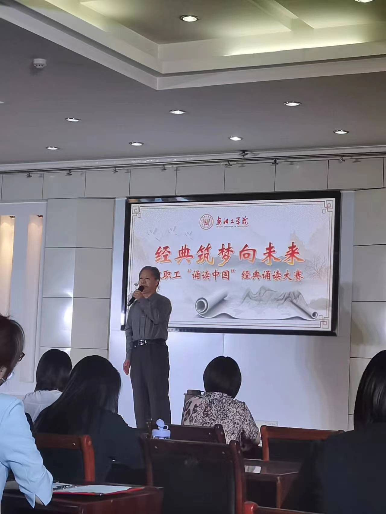 5月21日,在安阳工学院教职工“诵读中国”经典诵读大赛中,离退休干部朱猷卿同志参赛曲目为《沁园春.雪》,获得了三等奖第一名的优异成绩。
